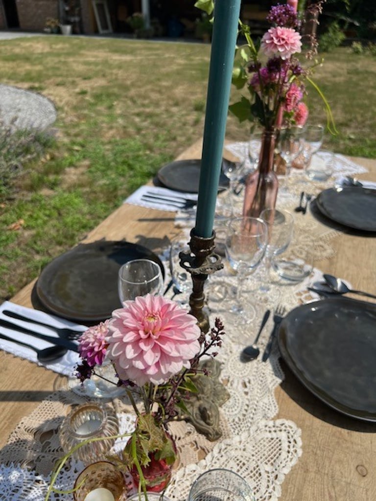 Ik heb het altijd al leuk gevonden feesten organiseren. Van verjaardagsfeestjes voor mijn kids en hun klasgenootjes, lentefeesten, familie- en tuinfeesten. Tot in de late uurtjes kan ik doorgaan om alles te laten sprankelen. Maar hé, iedereen is anders... Ben jij niet zo een fan van al dat gedoe, maar heb je wel graag je feestje gedecoreerd? Dan kom ik graag langs! Tafelschikking en -dekking, tafeldecoratie, opsmukken van de inkom... Het liefst ga ik daarbij aan de slag met wat er bij jullie thuis reeds aanwezig is. Je kan soms verbaasd zijn van het moois je in huis hebt. Uiteraard heb ik zelf ook wat decoratiemateriaal ter beschikking
