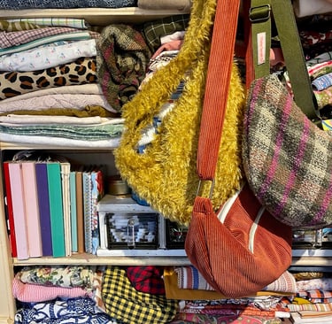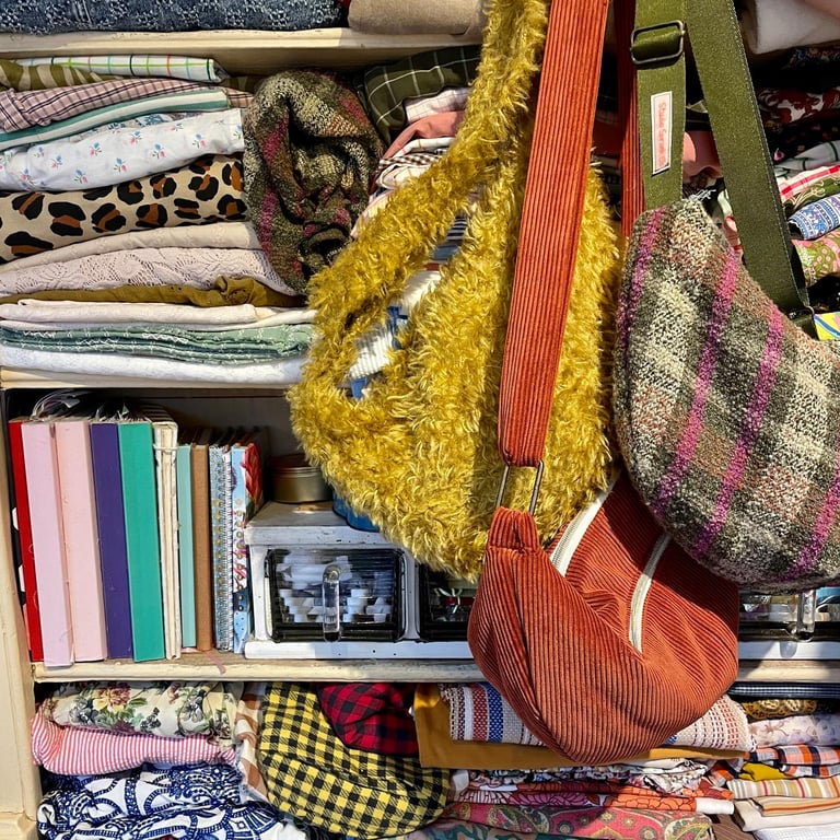 Ze zijn in én daarenboven nog heel functioneel. Ik maak voor jou een unieke versie! Je komt je stofje uitkiezen of brengt zelf een kledingstuk mee waaruit het gemaakt kan worden. Zie hieronder voor meer foto's!
