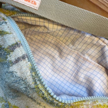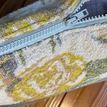 Gemaakt uit badstof in lichte, zomerse kleuren. Extra versteviging en lichte stof langs binnenkant zodat je makkelijk alles kan terugvinden.
