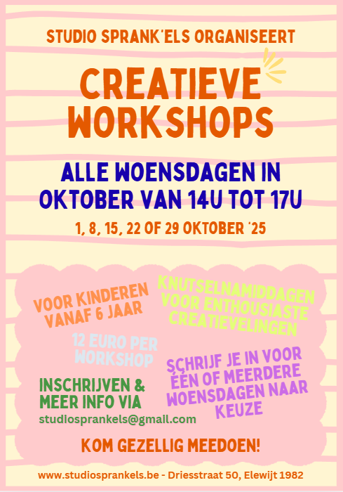 Inschrijven verplicht, plaatsen zijn beperkt! Inschrijven en meer info via studio.sprankels@gmail.com.
